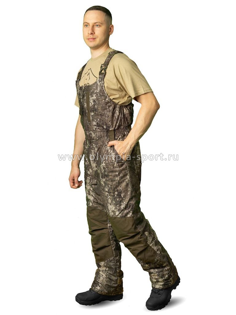 Удлиненная куртка прямого силуэта с воротником-стойкой, центральной застежкой на двухзамковую молнию. Утеплитель "Русский север" сохраняет комфортную температуру. Полукомбинезон с анатомическим кроем наколенников, ширина низа брюк регулируется при помощи хлястика, предусмотрена фиксация полукомбинезона по линии талии.